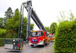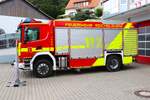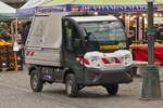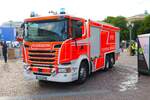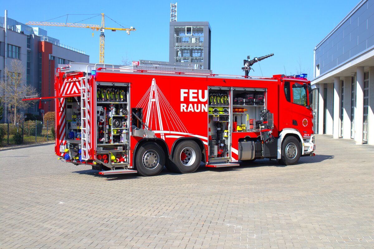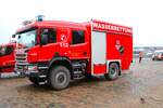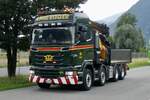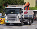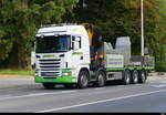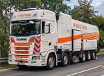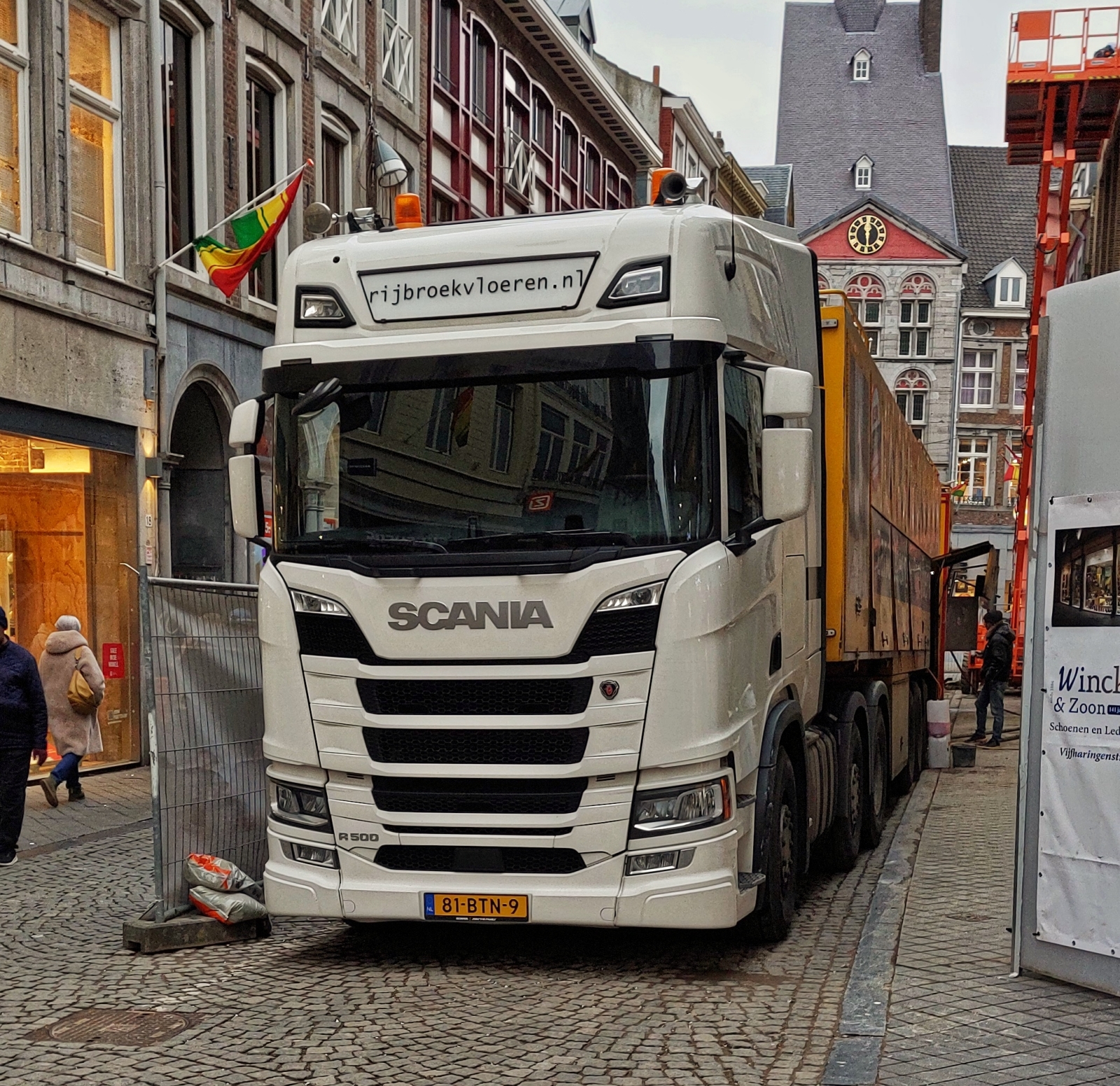 Scania R 500 Sattelzug, steht mit einer Lieferung an einer Baustelle in Maastricht. 02.2025