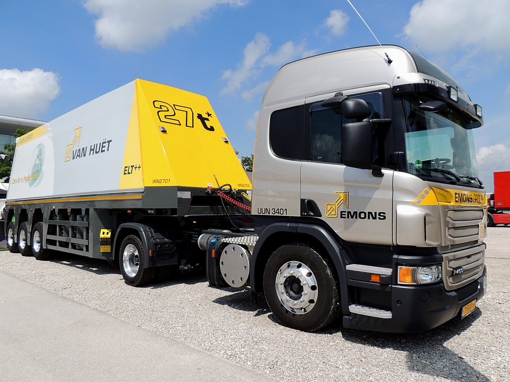 SCANIA P400 von EMONS-Group mit Auflieger zum Glastransport; 130607