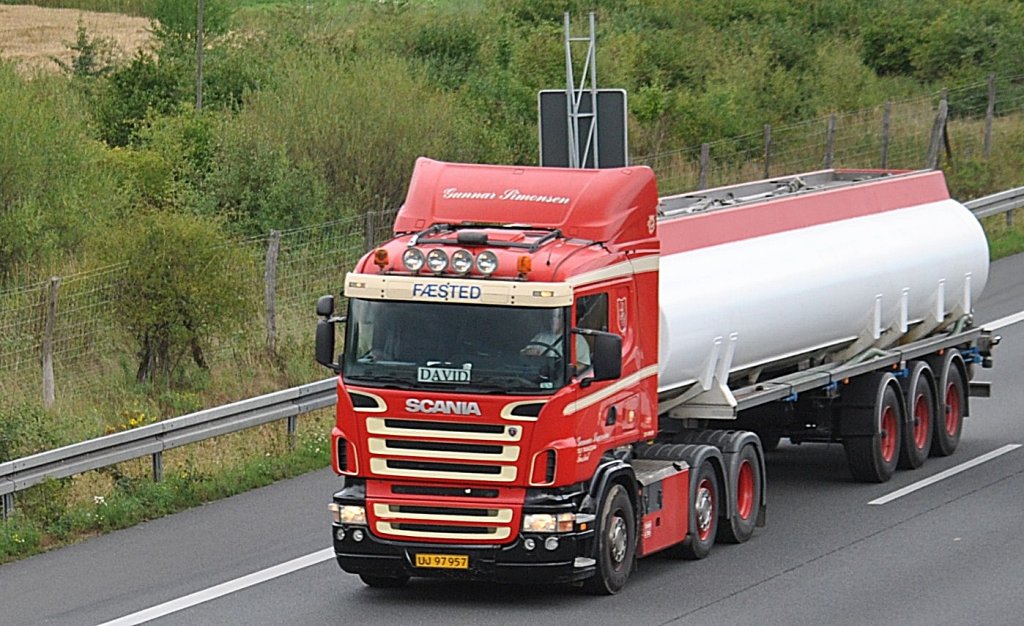 Ein Scania Tankschattelzug auf der A2 bei Lehrte im August ´10