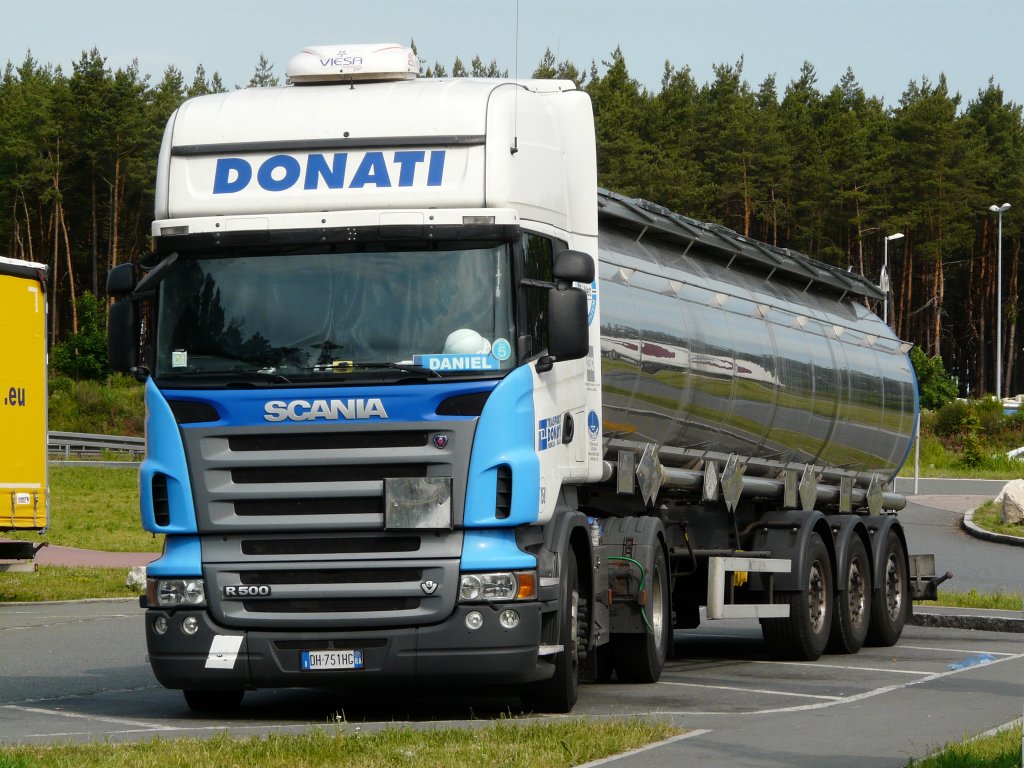 Scania R500 Tanksattelzug "Donati" aus Italien auf der Rastanlage Kammersteiner Land an der A6, 02.06.2011