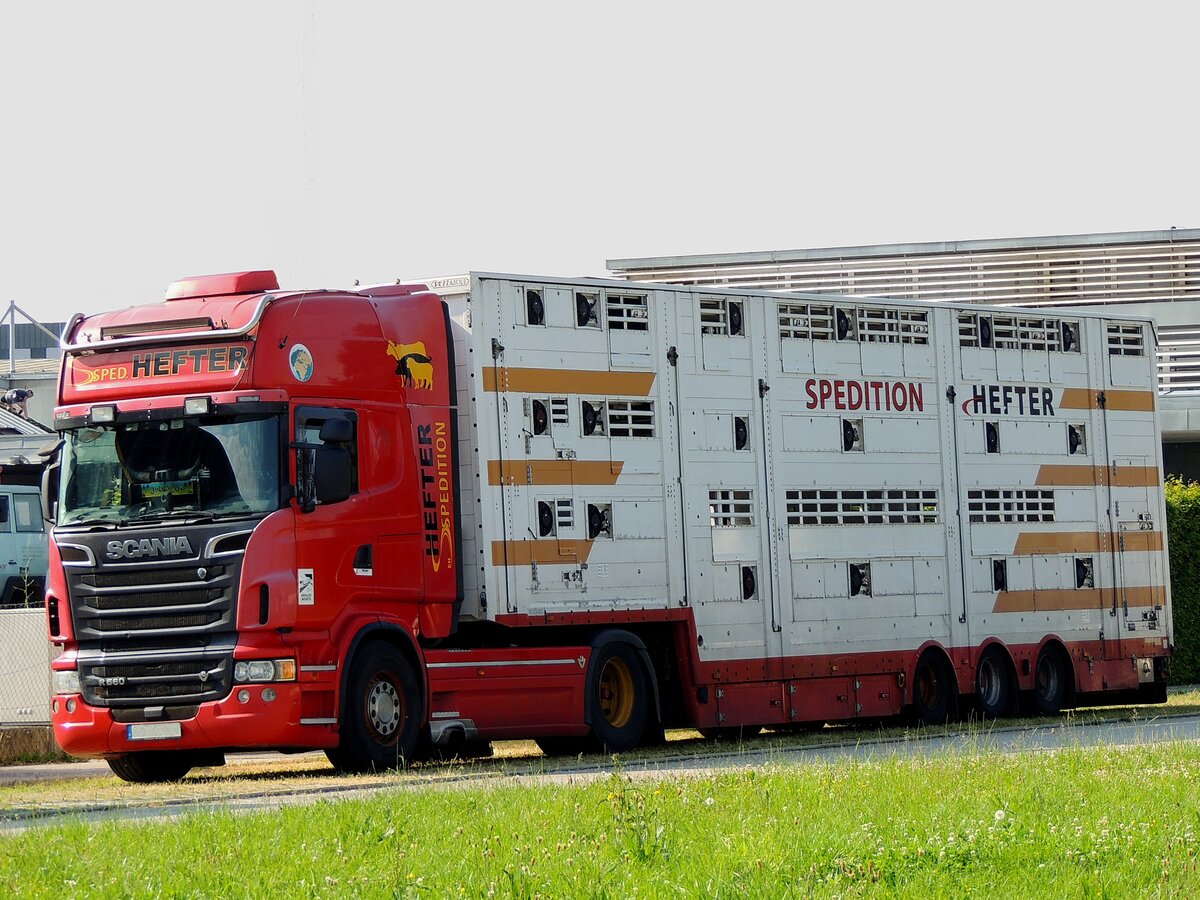 SCANIA R560 der Sped.Hefter mit Großviehtransportauflieger; 230607