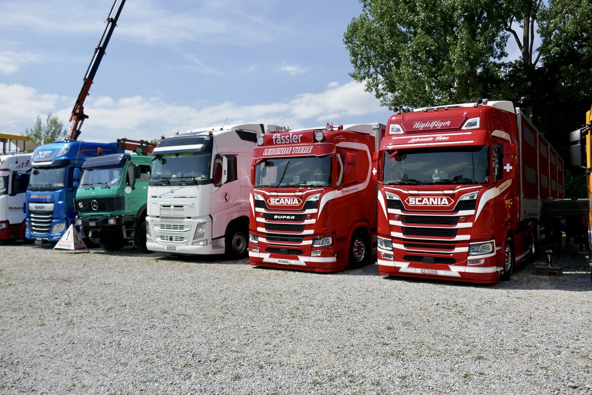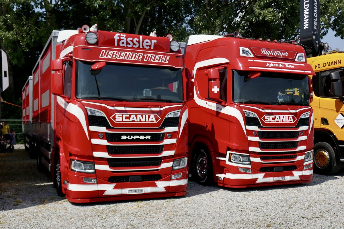 Zwei Scania Viehtransporter von Fässler am 5.7.25 beim Truckfestival Zürich.