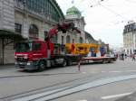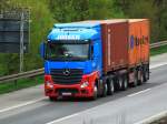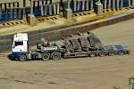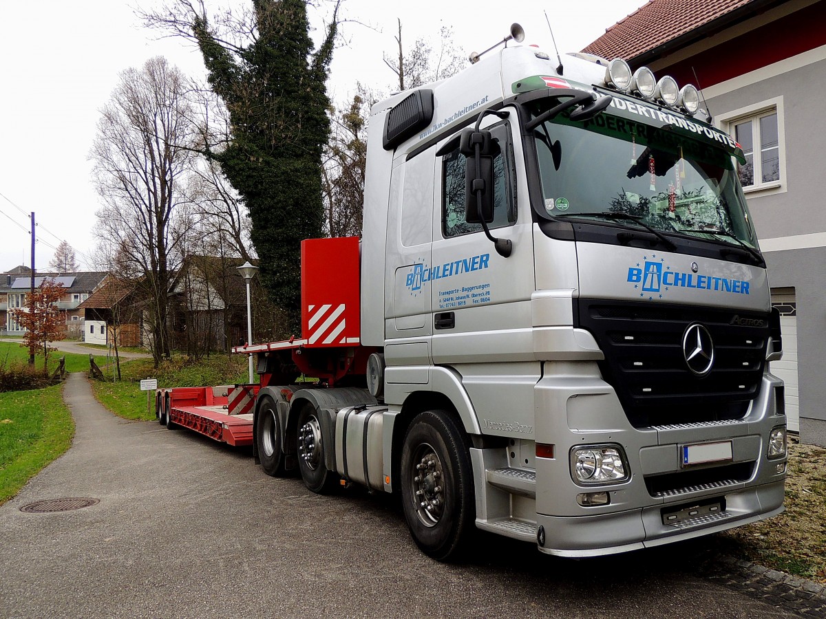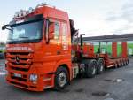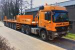 ACTROS-Zugmaschine f. Sondertransporte wartet mit dem Tiefladerauflieger auf die nächste Beladung; 141130