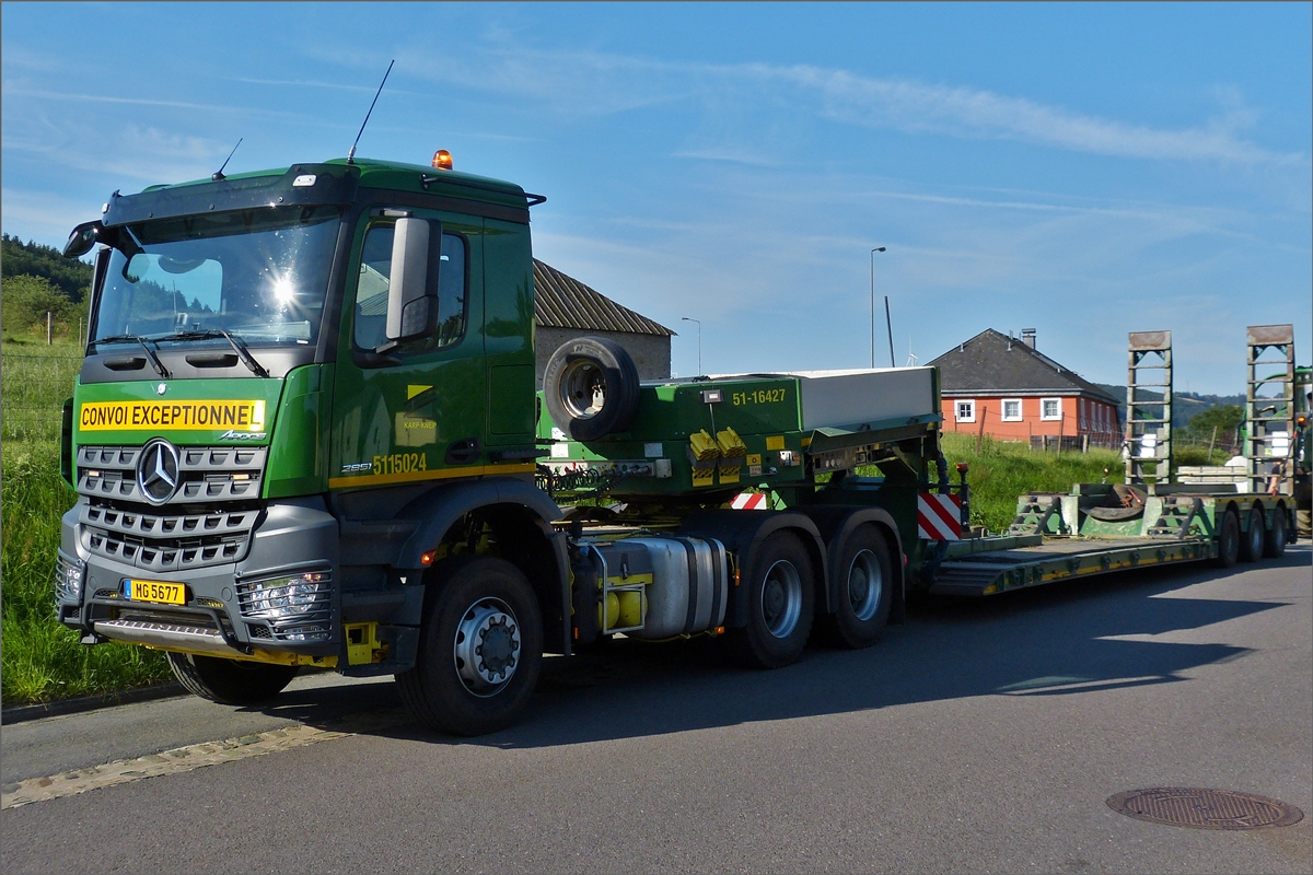 Mercedes Benz Arocs Schwerlastsattelzug gesehen am Straßenrand. 07.2020
