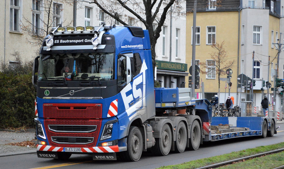 Ein Kraftpaket war heute auch unterwegs, eine VOLVO FH16 750 PS vierachsige Zugmaschine mit Ladebrücke als Auflieger der Fa. ES-Bautransporte GmbH am 30.11.20 Berlin Karlshorst. Nochmals Grüße an den Fahrer !!!!