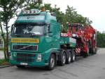 Volvo FH 520 Schwertransporter von "Schwandner" bei der Pause auf der Rastanlage Frankenhöhe, 27.05.2012