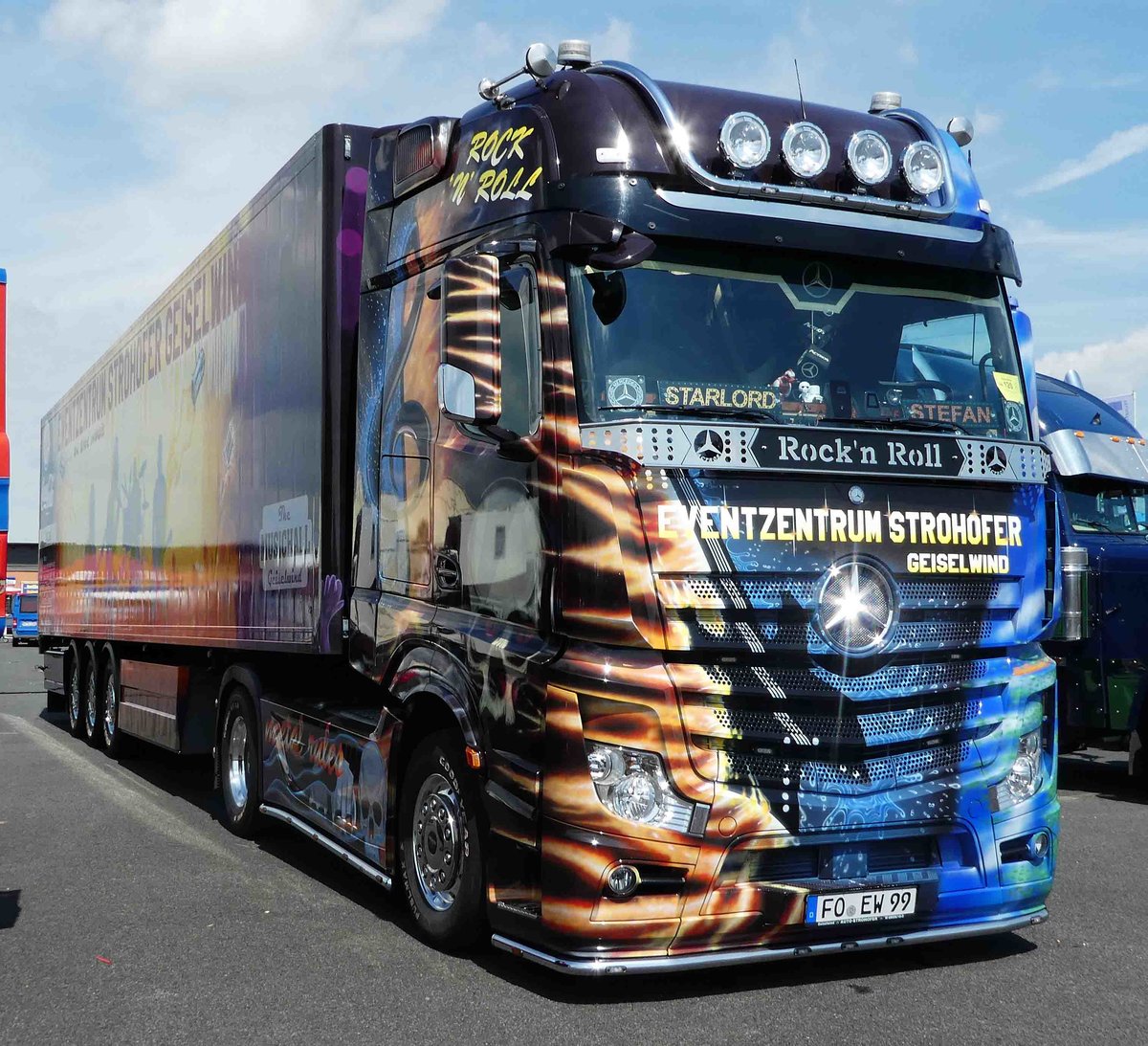 MB-Sattelzug als Werbeträger für den Autohof Geiselwind steht beim Country-, Trucker- und Streetfoodfestival Fulda im Juli 2017