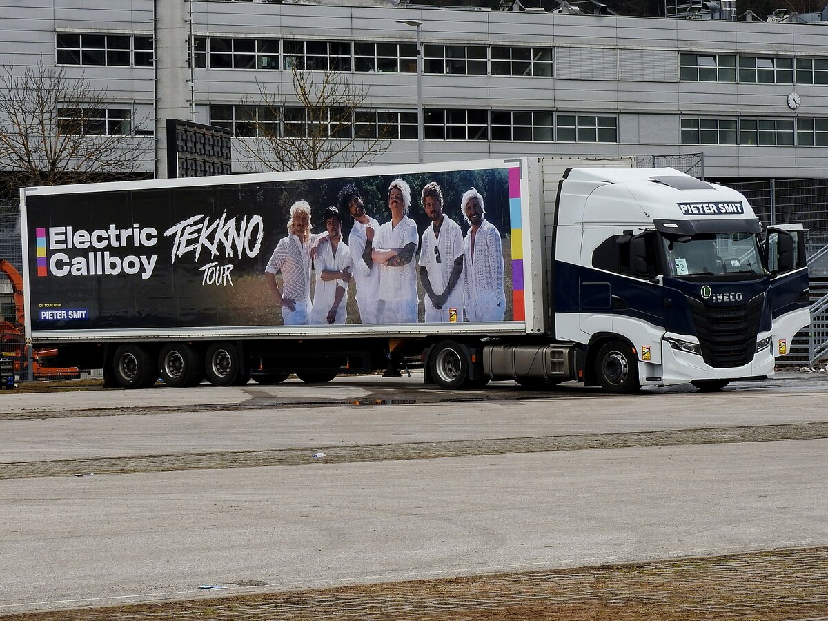 Gerade noch erwischt, Mercedes Benz Actros 1844 LH Kühlkoffer-Sattelzug "Die Kreuzzüge" der Spedition Schumacher aus Würselen bei Aachen. Dieses Fahrzeug wird als Modell von der Firma Herpa im Maßstab 1:87 angeboten.