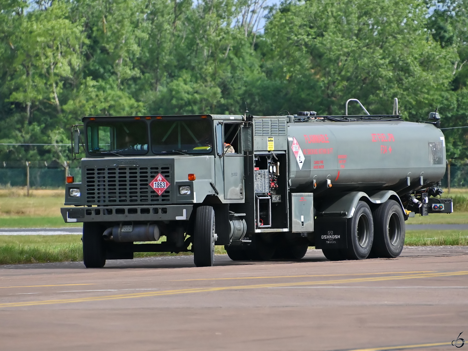 Dieses Oshkosh A/S32 R-11 Flugfeldbetankungsfahrzeug war Mitte Juli 2024 in Fairford zu sehen.