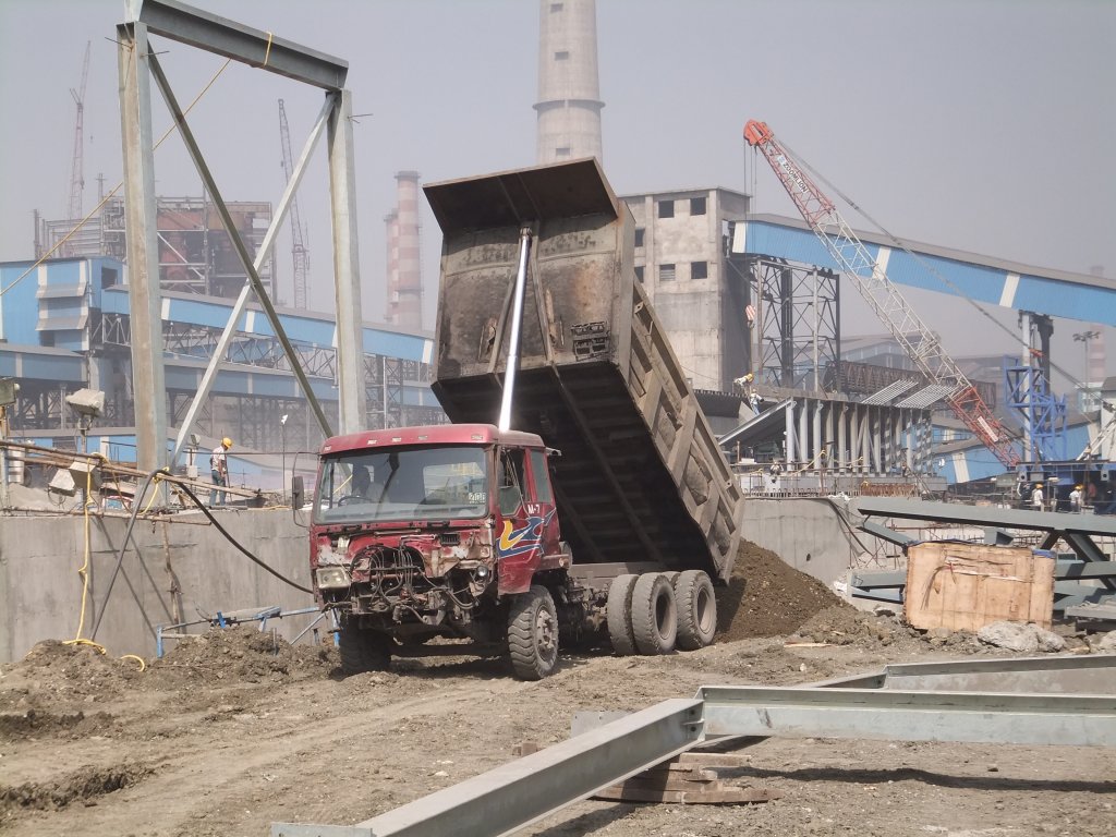 AMW (Asia MotorWorks) Kipper. Dieser Zustand dieses Kipper ist in Indien keine Seltenheit. (2012 Indien)