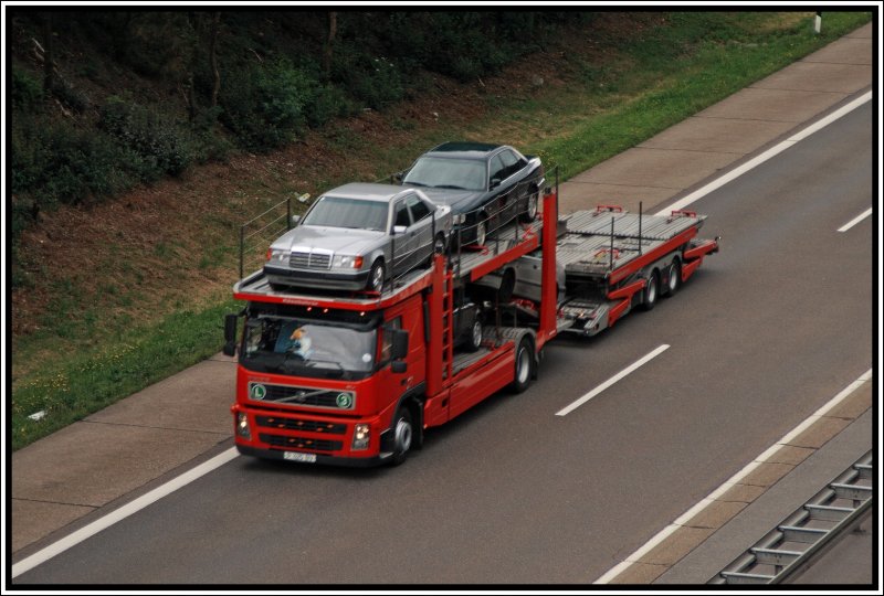 Polnischer(?) Volvo Autotransporter bei Lüdenscheid am Nachmittag des 02.08.2008.