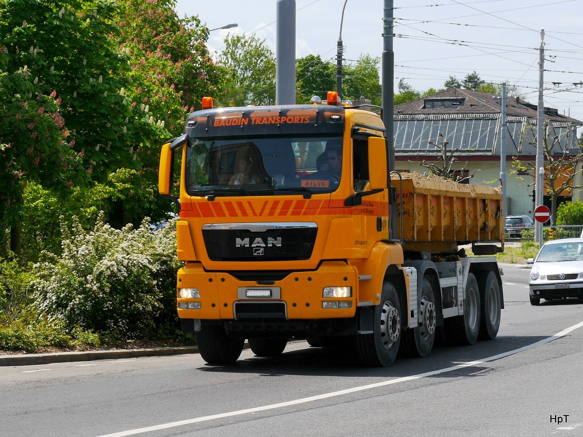 Volvo mit Schuttcontainer unterwegs in der Stadt Lausanne am 10.05.2016