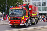 Volvo FM LKW Absetztkipper, des CGDIS, Feuerwehr, fuhr in der Kolonne der Fahrzeuge zur Militärparade in der Stadt Luxemburg mit. 23.06.2024