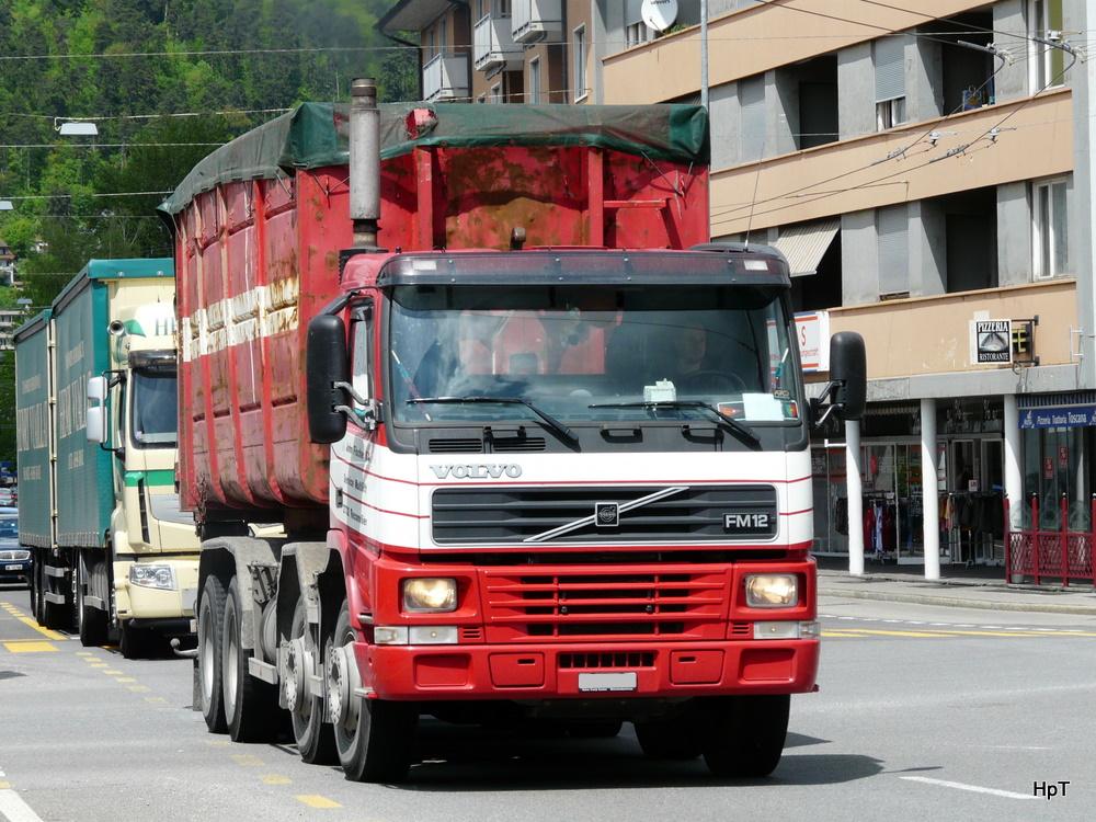 Volvo Absetzkipper unterwegs in der Stadt Sion am 10.04.2025