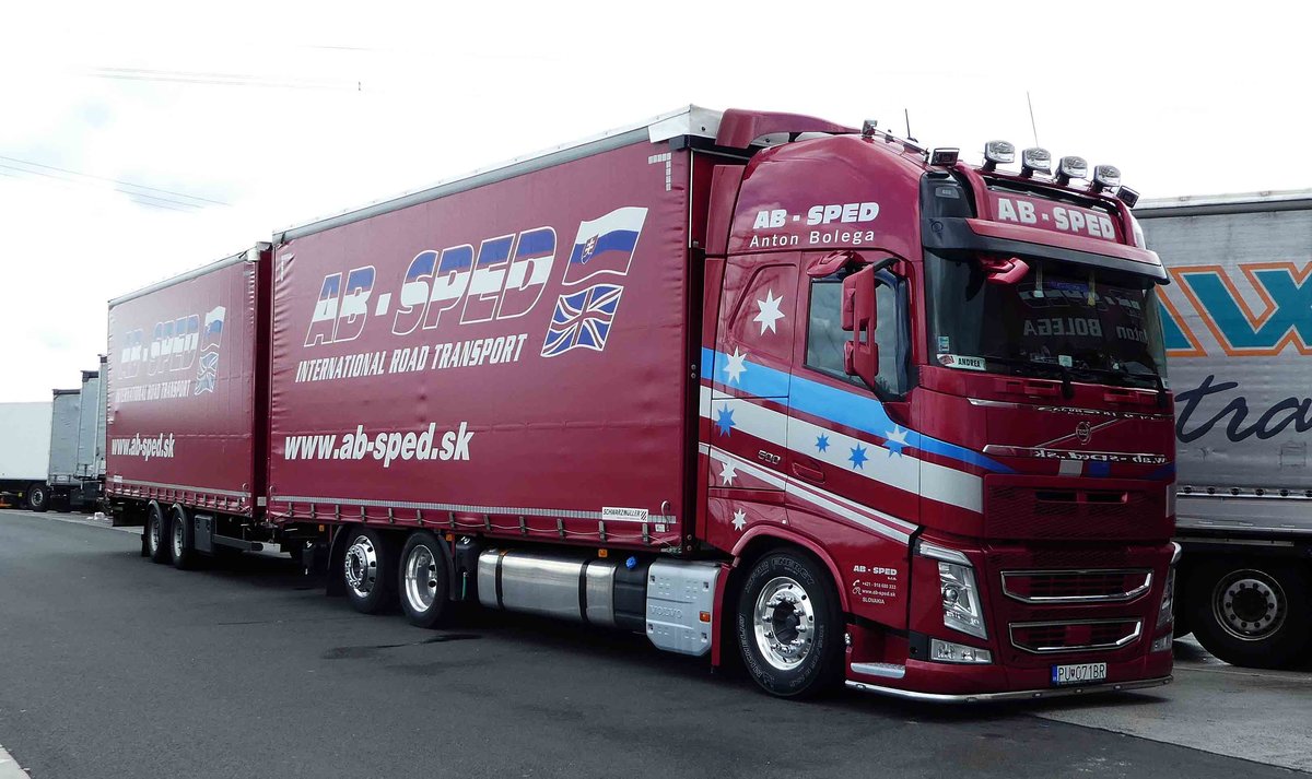 =Volvo von "AB-Sped" steht im Juli 2017 auf einem Rastplatz an der A 3