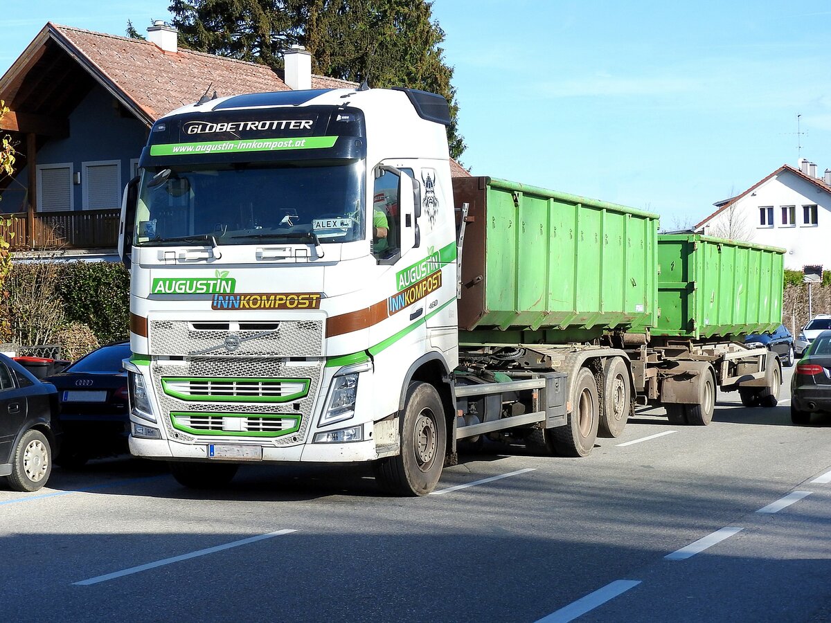 VOLVO-460 ist samt Hänger, sowie leeren Abrollcontainern, am Weg zur nächsten Ladestelle; 221102