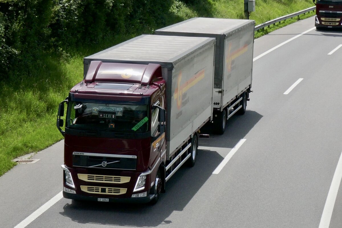 Ein Volvo Hängerzug von Galliker der am 28.6.24 unterwegs zum Trucker Festival ist auf der A8 in Matten b. Interlaken.