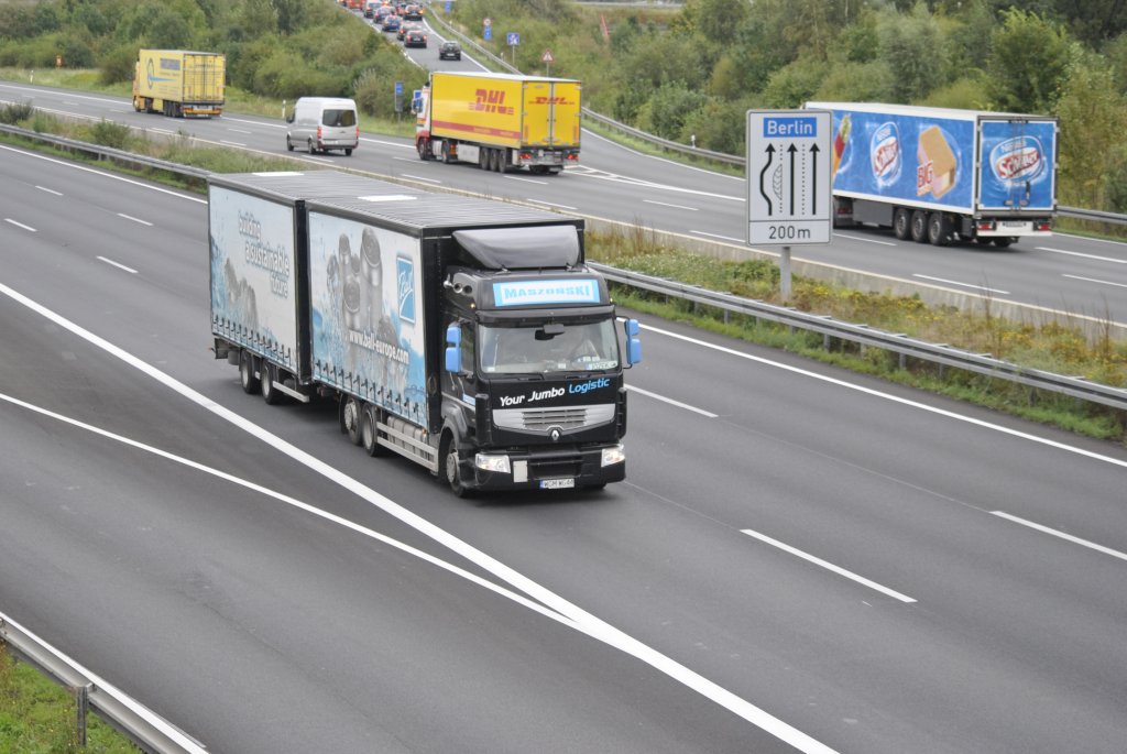 Volvo Hängerzug auf der A2 bei Lehrte, am 15.09.2011.