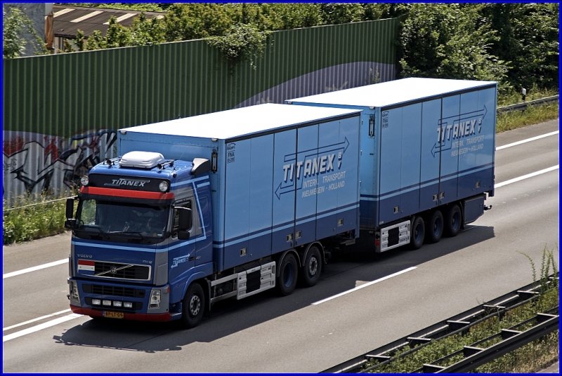 VOLVO FH12 460PS der TITANEX B.V. aus den Niederlanden. Eingesetzt werden Lkw´s der Marken DAF, Scania und Volvo. Tägliche Ziele sind z.B Kassel, Chemnitz,Bautzen, Hof oder Görlitz. Daneben finden gelegentliche Fahrten von und nach Italien, Frankreich, Spanien, Portugal und Dänemark statt. Tehrmo- und Luftfracht gehören zu den Aufgaben. Man beachte das der Anhänger und der Lkw 3 Achsen besitzen...