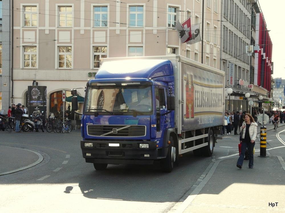 Volvo Getränkelieferer unterwegs in der Stadt Basel am 19.03.2010