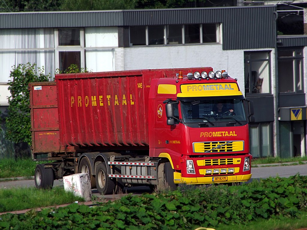 VOLVO-Hängerzug von PROMETAAL dreht im Bereich von Utrecht eine Wendekehrschleife;100903