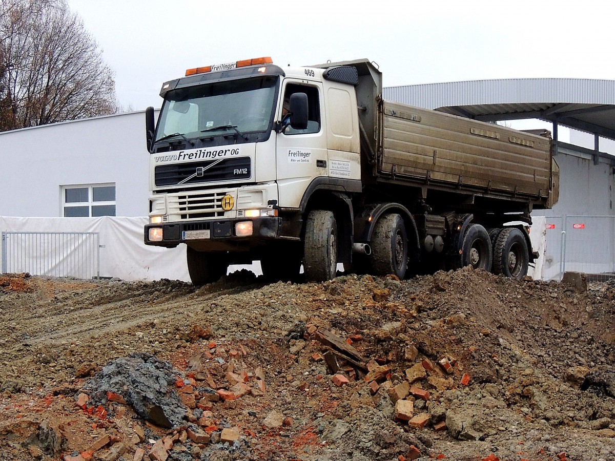 VOLVO FM12 am Weg zur Beladung von Aushubmaterial; 131130