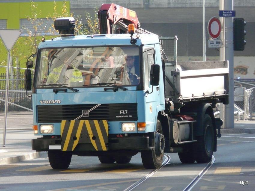 Volvo FL 7 Kipper unterwegs in der Stadt Genf am 11.12.2009