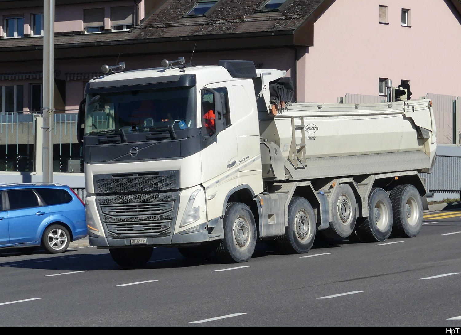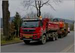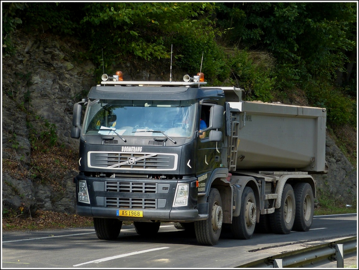 Vollbeladener Volvo Kipper müht sich einen Berg hinauf um zur Entladestelle zu gelangen. 01.10.2013