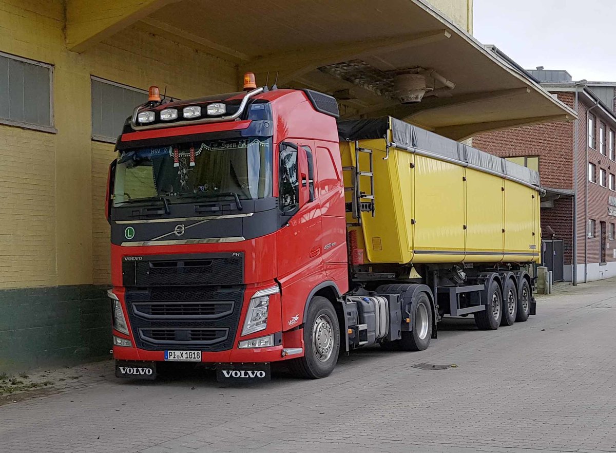 =Volvo FH-Kippersattelzug steht im Mai 2019 im Hafengebiet von Rendsburg