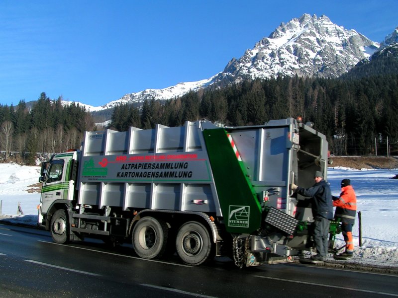 Müllwagen im Arbeitseinsatz bei Leogang/Salzburg; 090205