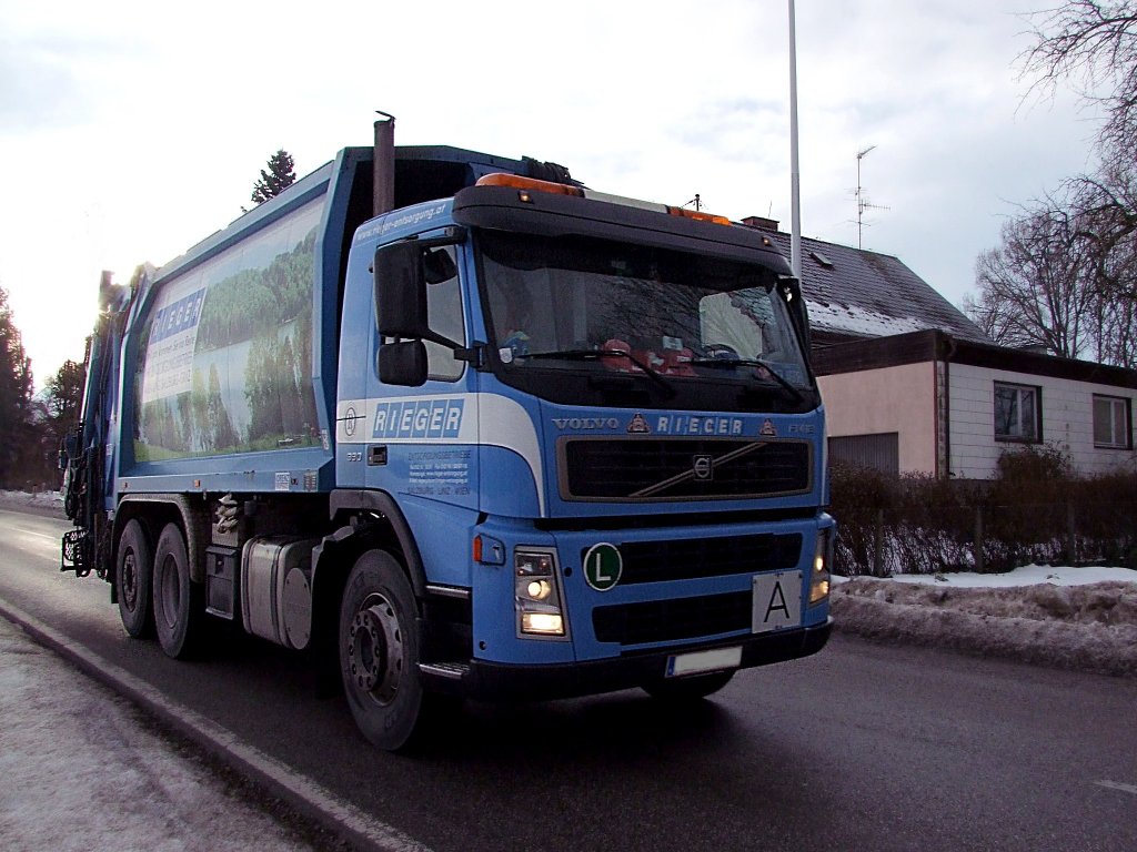 VOLVO FM12-380 von Rieger ist schon Frühmorgens im Dienste der Sauberkeit unterwegs;101223