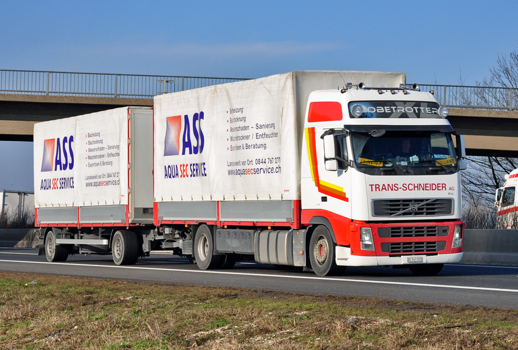 Volvo FH Hängerzug  Trans Schneider  auf der A61 bei Miel - 22.02.2011