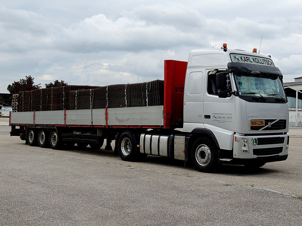 VOLVO FH 480 hat auf seinem Auflieger Betonmatten geladen; 120522