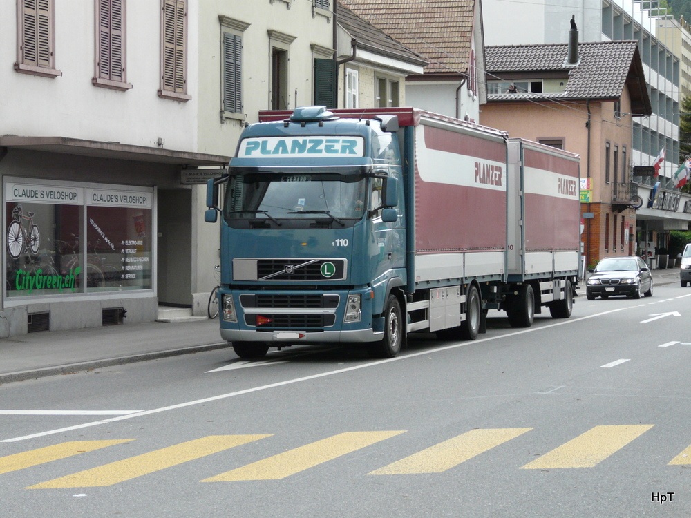 Volvo mit Pritschenaufbau und Hänger unterwegs in Biel am 02.05.2013