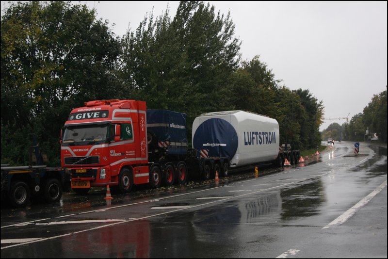Volvo FH16 660PS mit dem Windkraftmotor am Straßenrand. (01.10.08)