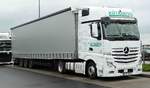 =Volvo FH-Sattelzug der Obstanbauers "NUSTER" steht auf einem Rastplatz an der A 3 im November 2017