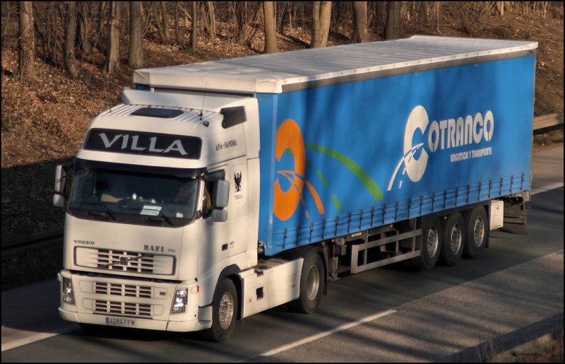 España: Weitab von Zuhause (mindestens 1400 Kilometer) ist dieser weiße Volvo FH 480PS Euro5 bei Hagen-Hohenlimburg unterwegs. Der Auflieger gehört der CONTRANCO LOGISTICA TRANSPORTE aus Córdoba/Spanien.