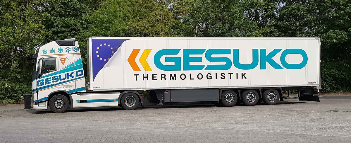 =Volvo FH-Thermosattelzug von GESUKO-Thermologistik rastet im Mai an der A 7