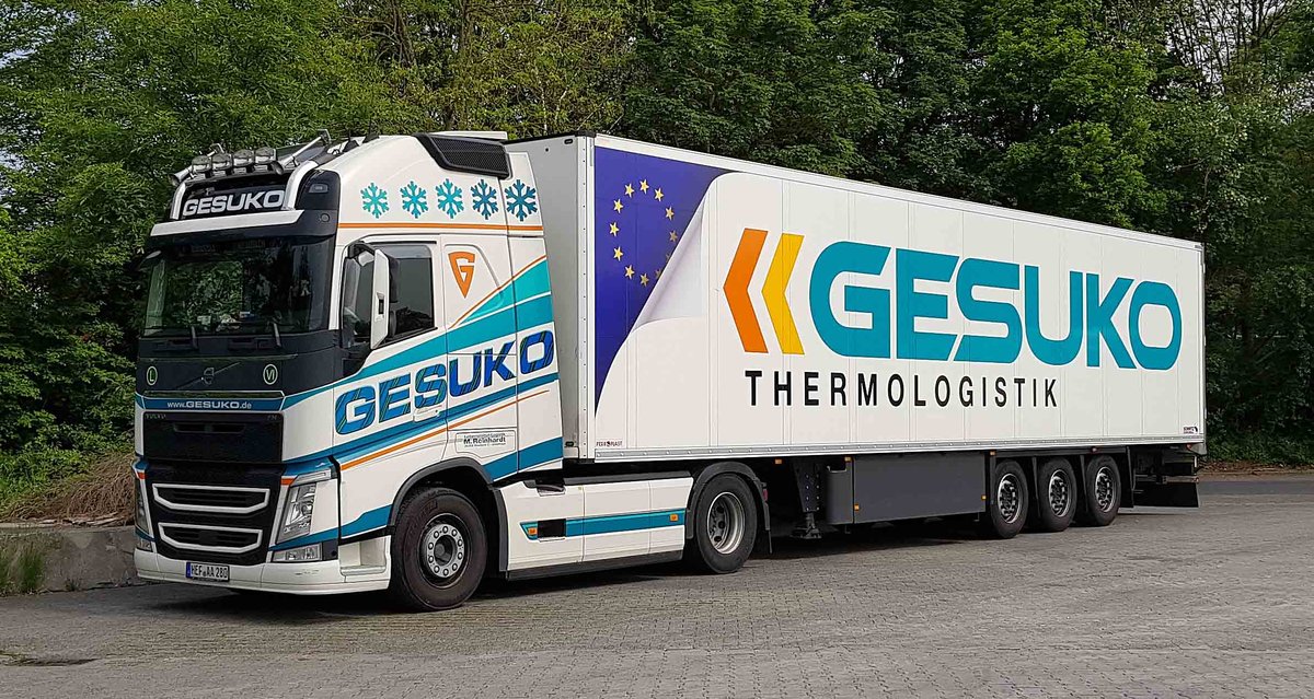 =Volvo FH-Thermosattelzug von GESUKO-Thermologistik rastet im Mai an der A 7