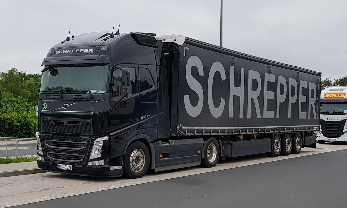 =Volvo FH der Spedition SCHREPPER steht im Juni 2021 auf einer Rastanlage an der A 7