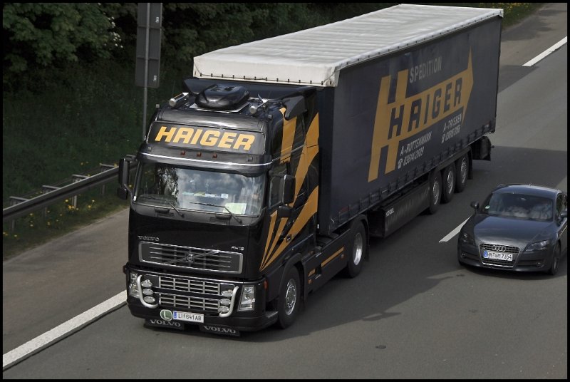 VOLVO FH16 610PS der österreichischen HAIGER Spedition. Hier bei Lüdenscheid am 04.05.2009.