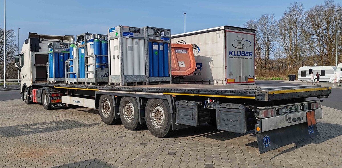 ES Bautransporte GmbH mit einem Sattelzug mit Asphaltkocherauflieger und VOLVO FH16 650 EURO6 Zugmaschine am 23.11.22 Berlin Marzahn.