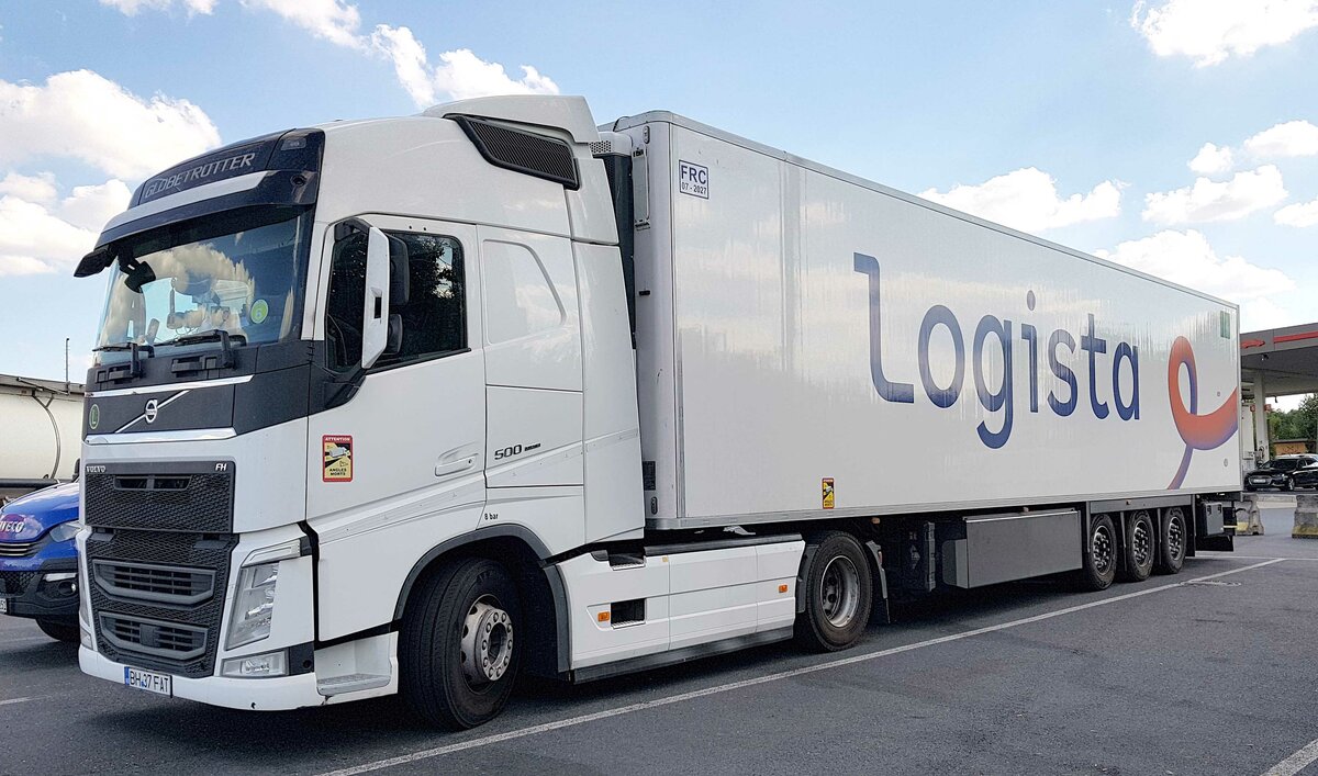 =Volvo FH mit einem Sattelauflieger von LOGISTO steht zur Fahrerpause auf dem Rasthof Werneck, 07-2022