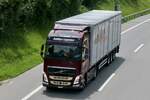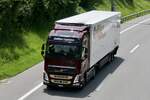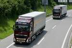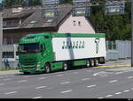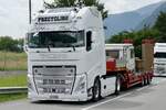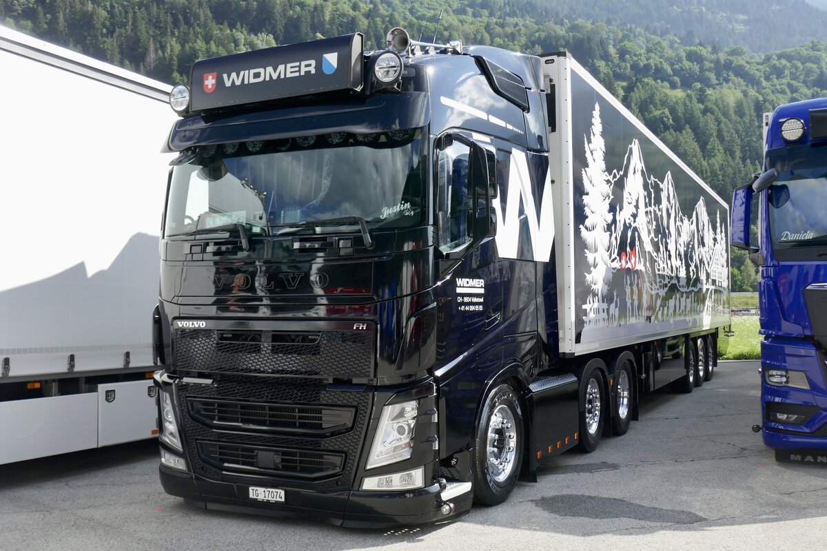 Ein Volvo FH Sattelzug von Widmer Transporte der am 14.7.24 beim Trucker Treffen in Ambri steht.