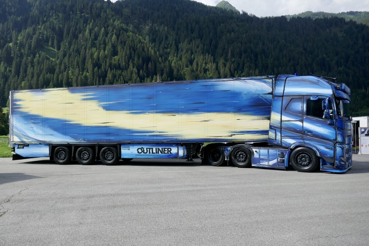 Der Outliner, ein Volvo Sattelzug der von Thomann Nutzfahrzeuge neu aufgebaut wurde und von einem Graffity-Künstler mit einer Spraydose angefärbt.