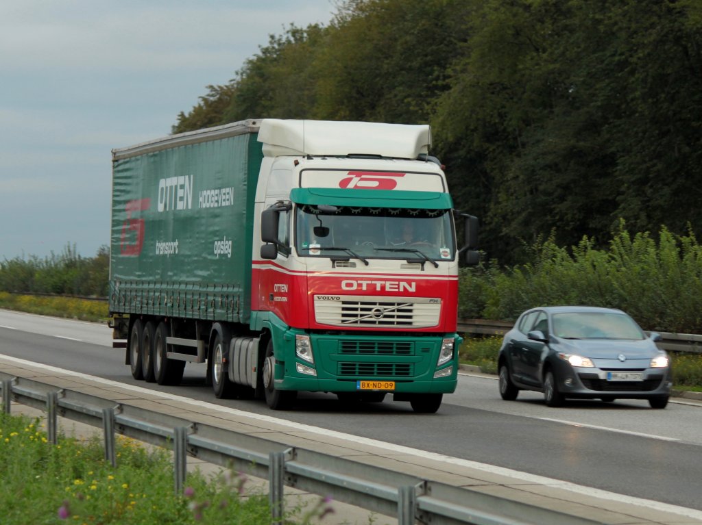Volvo FH12 mit Sattelauflieger am 20.09.2011 auf der A4 kurz hinter dem Aachener Kreuz in Richtung Niederlande.