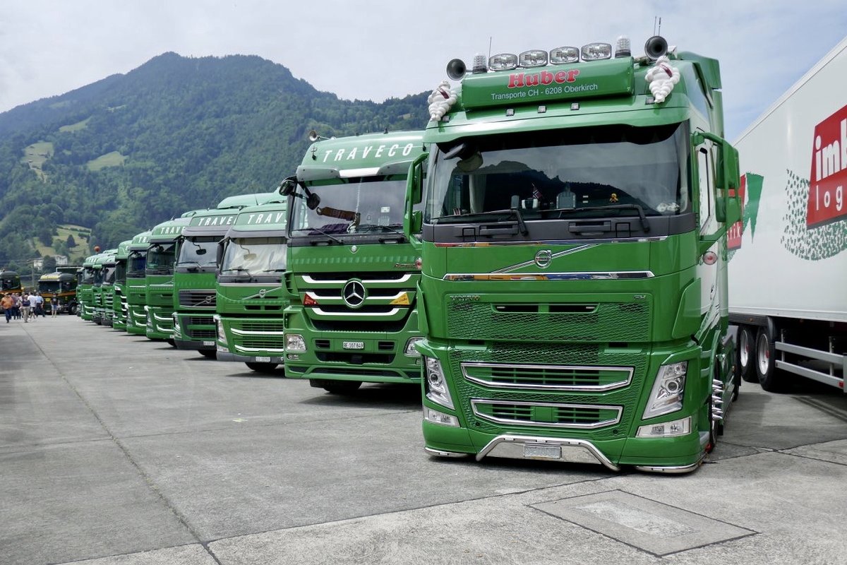Volvo und MB Actros von Traveco beim Trucker Festival Interlaken am 25.6.18.