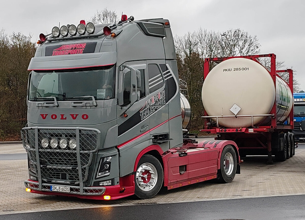 =Volvo von KNIPPING-Transporte rangiert auf dem Autohof Fulda Nord, 12-2023