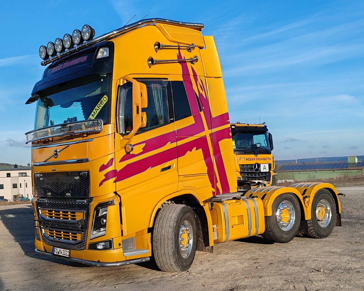=Volvo-Sattelzugmaschine von WEIDER-Erdarbeiten steht im Januar 2024 in Fulda