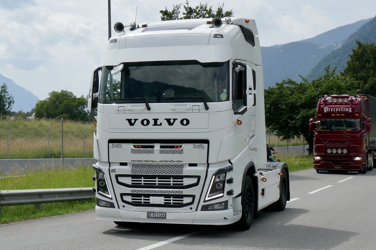 Eine Volvo FH Zugmaschine von Precling die am 28.6.24 aufs Gelände des Trucker Festival fährt in Bönigen.